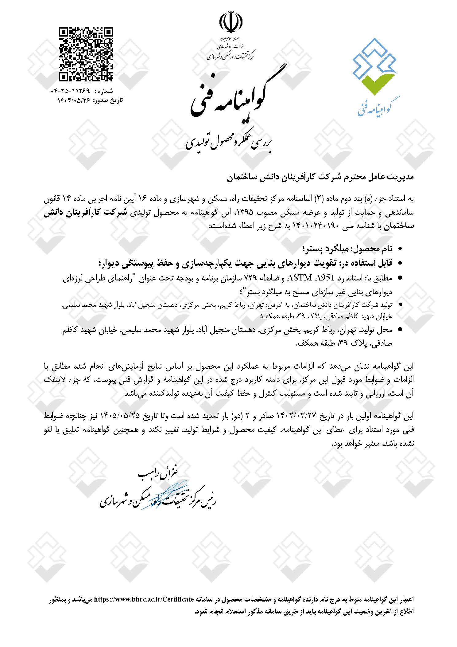 دارای گواهینامه مرکز تحقیقات مسکن و شهرسازی هستیم و سیب سلامت داریم